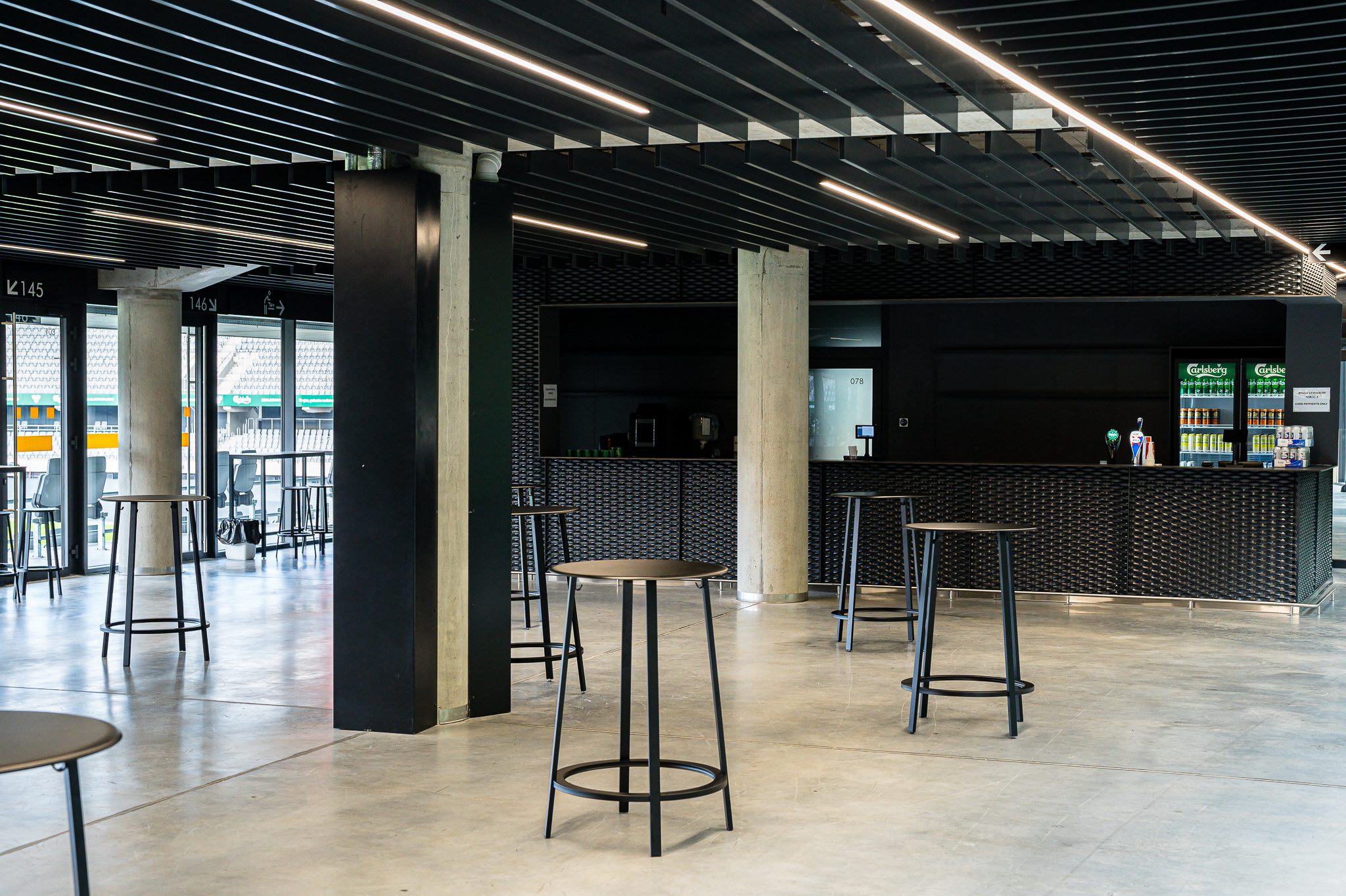 An office space of 140,25 m2 with a separate entrance and a sanitary unit. The office space comes with 3 parking spots in the stadium’s parking lot.
